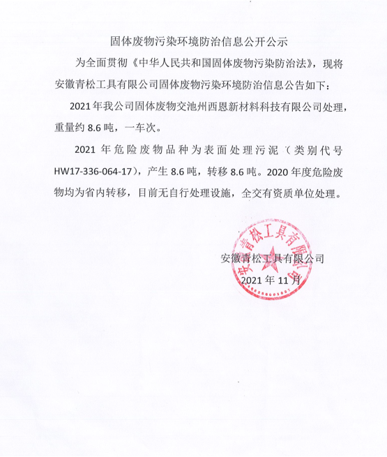 固體廢物污染環境防治信息公開公示