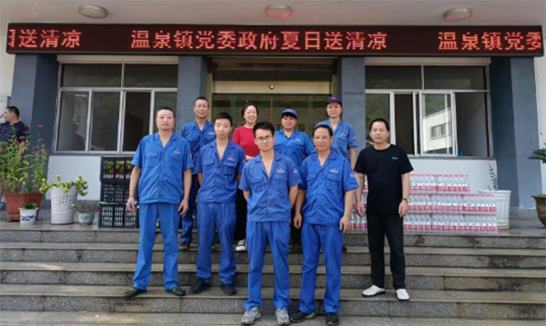 8月18日上午,溫泉鎮(zhèn)工會主席汪珺、鎮(zhèn)政法委員楊似南一行來公司慰問生產(chǎn)一線工人,并送來了鮮梨和礦泉水,鼓勵他們戰(zhàn)勝高溫,圓滿完成各項生產(chǎn)任務(wù),同時要求企業(yè)做好各項防暑降溫工作,確保員工身心健康。